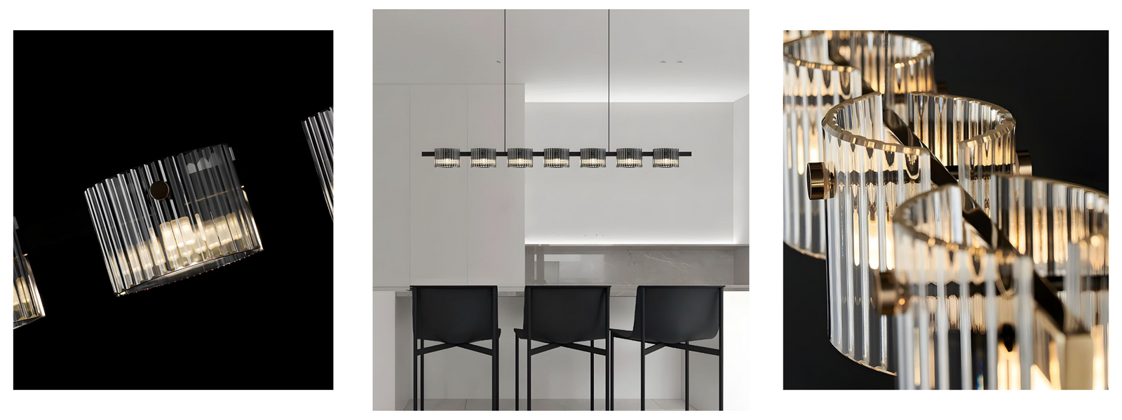 Elevate your space with the Auric Cascade Chandelier, a masterpiece of refined luxury and modern elegance. Designed with precision, this linear chandelier features cascading crystal prisms suspended from a sleek, gilded frame, creating a mesmerizing interplay of light and shadow. Perfect for dining areas, kitchen islands, and grand interiors, its warm golden glow adds an opulent yet contemporary charm to any setting. Crafted with premium materials and impeccable craftsmanship, the Auric Cascade Chandelier is more than just lighting—it’s a statement of sophistication. Exclusively from Ivanka Lumiere, where timeless design meets radiant brilliance.