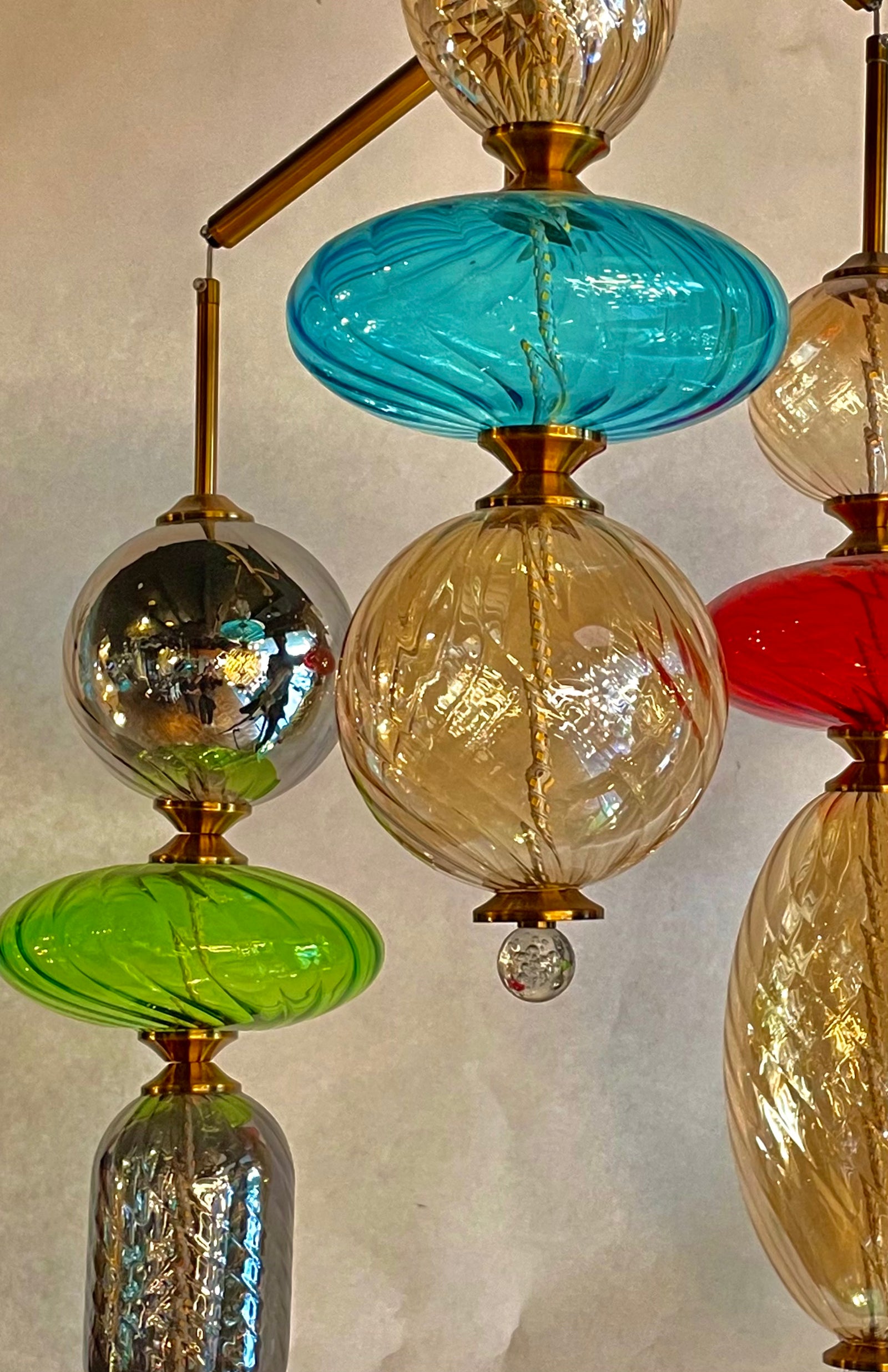 The Glass Beads Pendant Lamp is designed around a sophisticated yet simple concept: elegant beads strung together with brass connectors. This design not only creates a visually rich and luxurious appearance but also highlights the intricate interplay between the glass and the metal elements. The combination of these materials produces a lamp that exudes both grandeur and modern style. Available in a variety of colorful beads, this pendant lamp offers an array of options to suit different tastes and interior designs. Whether you choose a small, delicate version or a larger, more dramatic statement piece, the lamp's vibrant beads provide a feast for the eyes. The assortment of shapes and colors allows for endless combinations and surprising possibilities, making each lamp a unique and personal addition to your décor. The Glass Beads Pendant Lamp stands out as an exclusive piece, offering a luxurious touch that must be seen and touched to truly appreciate its extravagance. Its stunning visual impact and the tactile quality of the handblown glass make it a compelling choice for those seeking to elevate their interior with a touch of opulent sophistication. Whether used as a centerpiece in a grand living room, a statement piece in a dining area, or a focal point in a chic entryway, this lamp is sure to captivate and enchant.