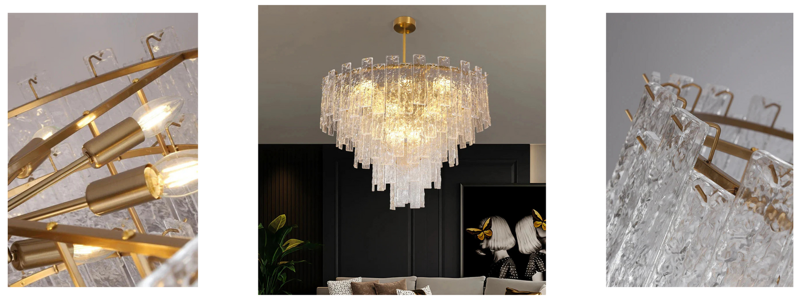 Perfect for grand foyers, lavish dining areas, or luxurious living spaces, the Gilded Prism commands attention with its striking presence. Its harmonious balance of shimmer and warmth creates an ambiance of grandeur, making every moment feel extraordinary.
