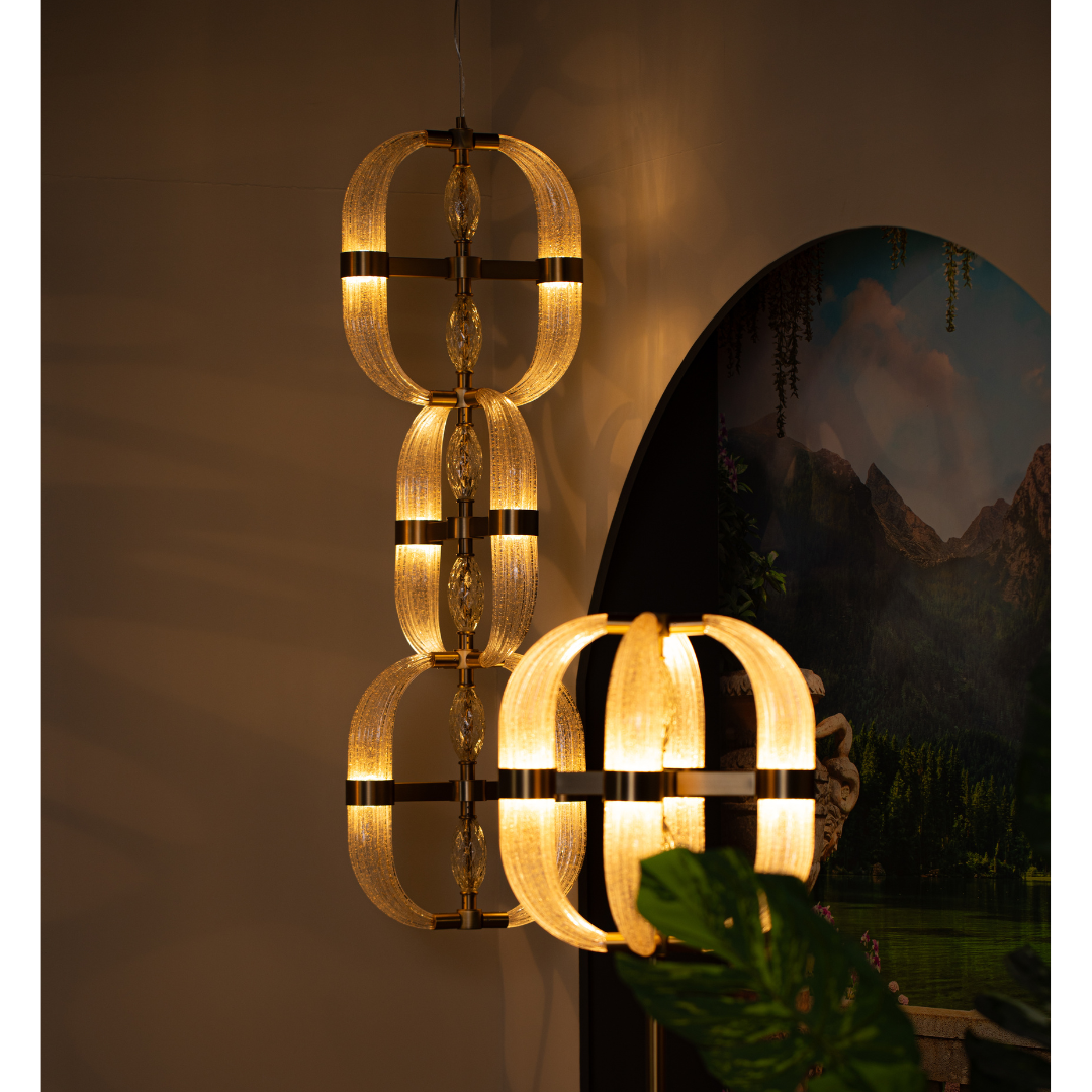 The 3-string design not only creates a visually striking effect but also ensures a balanced and elegant illumination that transforms any space into a sophisticated haven. Crafted with an unwavering commitment to detail, these pendants are designed to capture and reflect light in a way that accentuates both the pendant's artistry and the ambiance of your environment. Elevate your look and illuminate your presence with our exclusive 3-string luxury pendant designs. Here, beauty meets craftsmanship in every detail, offering a luxurious addition to your décor that seamlessly blends aesthetic appeal with functional elegance. Whether you’re looking to enhance your living room, dining area, or any other space, our pendants promise to add a touch of opulence and charm, making every moment shine with exquisite allure.