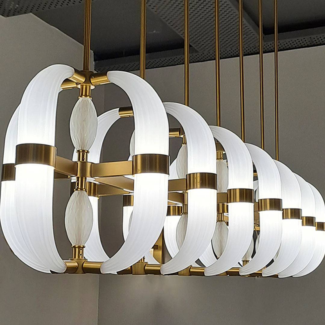 This dramatic light cascade pendant is designed for versatility, allowing for both vertical and horizontal configurations to suit your space's unique requirements. Whether used as a singular bold statement or combined with multiple elements, it adapts to various settings with effortless grace. Ideal for illuminating expansive environments, this chandelier not only provides exceptional lighting but also enriches the atmosphere with its iridescent galvanic metallic finish. The shimmering nuances of the metallic surface add depth and warmth, transforming any room into a luxurious and inviting space. The fusion of intricate glasswork and sturdy metal structure ensures that this chandelier is both a stunning visual centerpiece and a functional, ambient lighting solution.