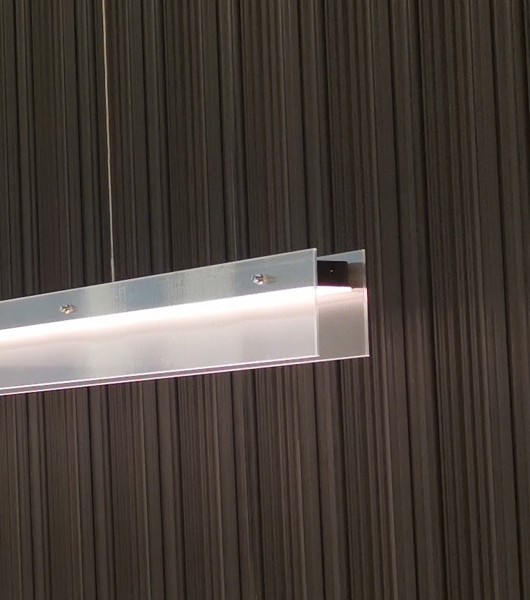 The pendant light features a robust, frosted acrylic diffuser encased in a sleek aluminum frame. This combination not only ensures durability but also enhances its aesthetic appeal. The frosted acrylic serves a dual purpose: it softens and disperses the LED light uniformly, significantly reducing glare and creating a gentle, warm white glow. This results in a consistent wash of ambient light that adds a sense of calm and tranquility to the room. Whether you're illuminating a dining area, living room, or even a modern office space, the Linear Drop Tube Light provides a sophisticated yet functional lighting solution. Its understated design allows it to blend effortlessly with various decor styles, while its efficient LED technology ensures a bright and inviting atmosphere.