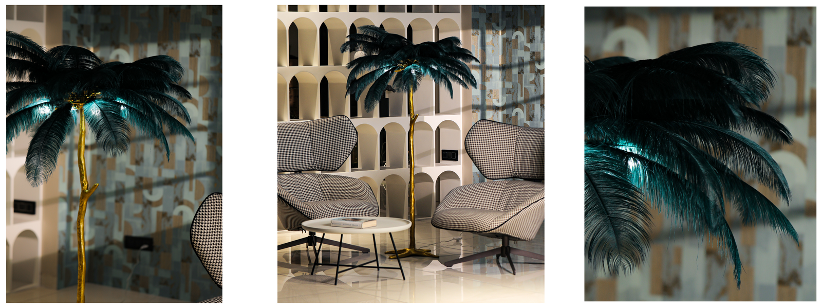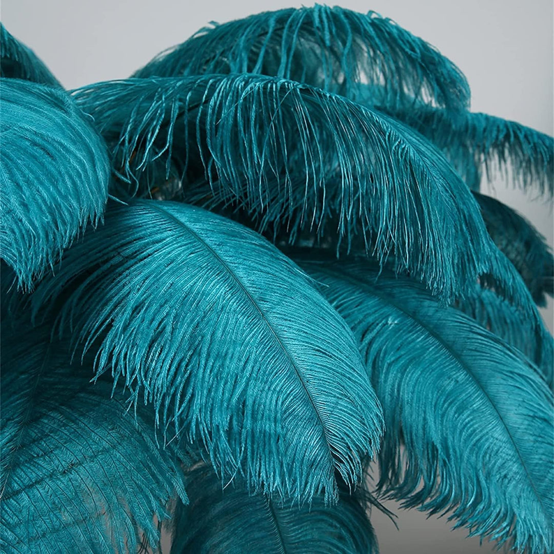 Inspired by the elegance of a palm tree, this illuminating masterpiece showcases resplendent blue ostrich feather foliage that brings a touch of exotic flair. The **Blue Feather Floor Lamp** takes center stage in luxury settings, delivering a lavish Midas touch that perfectly complements Hollywood Regency decor. As a true pièce de résistance among standing lamps, it commands attention with its stunning design and intricate craftsmanship. Crafted with meticulous attention to detail, the lamp’s feathery embellishments create a captivating play of light and shadow, enriching your space with warmth and sophistication. Whether you place it in a lavish living room, an upscale dining area, or an elegant foyer, the **Blue Feather Floor Lamp** is sure to transform any setting into a luxurious oasis. Elevate your home decor with this stunning floor lamp and let its unique beauty and glowing presence enhance your environment, creating an inviting atmosphere that radiates style and charm.