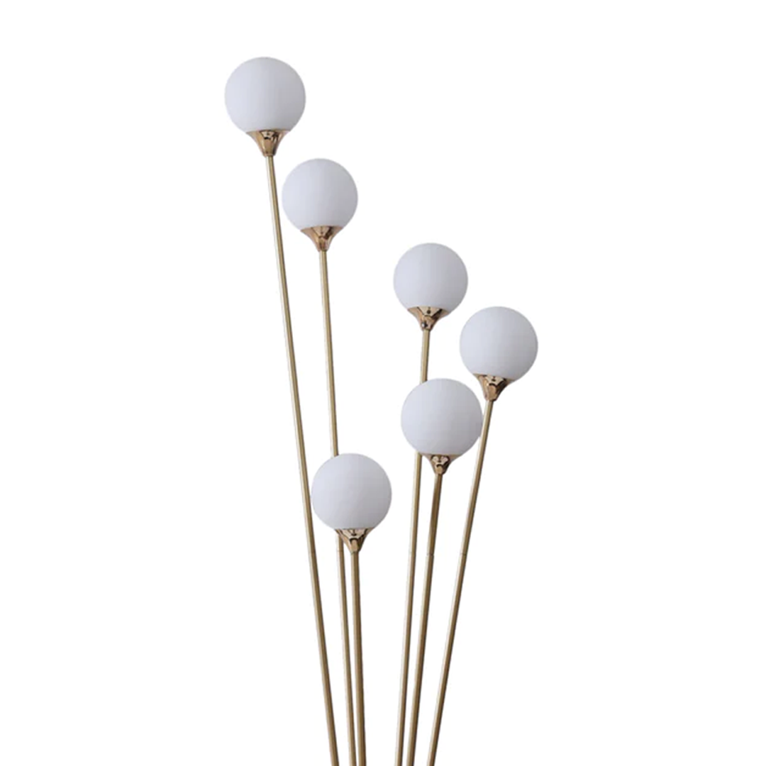 The elegant design showcases the exquisite craftsmanship of the glass, with each globe reflecting light in a way that enhances the ambiance of your space. The sleek metal armature complements the globes, providing a sturdy yet stylish base that elevates the overall aesthetic. Whether placed in a living room, bedroom, or office, the Glass Goblet Floor Lamp adds a warm, homely touch to any decor. Its captivating silhouette not only serves as a functional lighting solution but also as a statement piece that draws the eye and enhances your interior design. Illuminate your space with this gorgeous floor lamp, and let it become the centerpiece of attention in your home, bringing both style and comfort to your living environment.