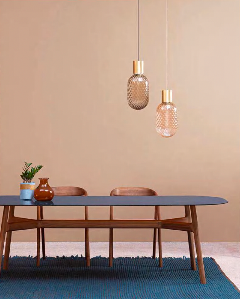 BLOOM recalls the preciousness of old perfume bottles and the shape of oriental diffusors. Depending on the chosen type of glass and light source, the effect can be more intimate or sensual.