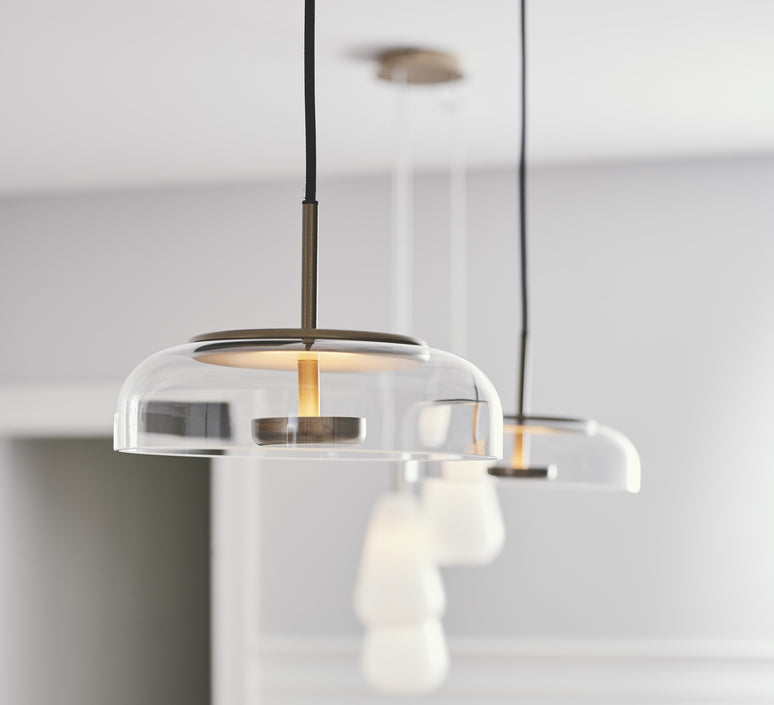 At the heart of the pendant light is a specially developed LED disc, meticulously positioned to reflect light through the transparent glass shade. This design ensures that the illumination is soft, even, and indirect, creating a warm and inviting ambiance that enhances any room. The golden finish of the metal frame further contributes to the light’s overall elegance, casting a gentle glow that highlights the beauty of the pendant’s design while providing a soothing, atmospheric light. Ideal for a variety of settings, this pendant light is perfect for adding a touch of sophistication to living rooms, dining areas, or entryways. Its classic design, combined with modern lighting technology, makes it a versatile and stylish choice for those looking to elevate their interior with a piece that combines beauty, functionality, and timeless elegance.