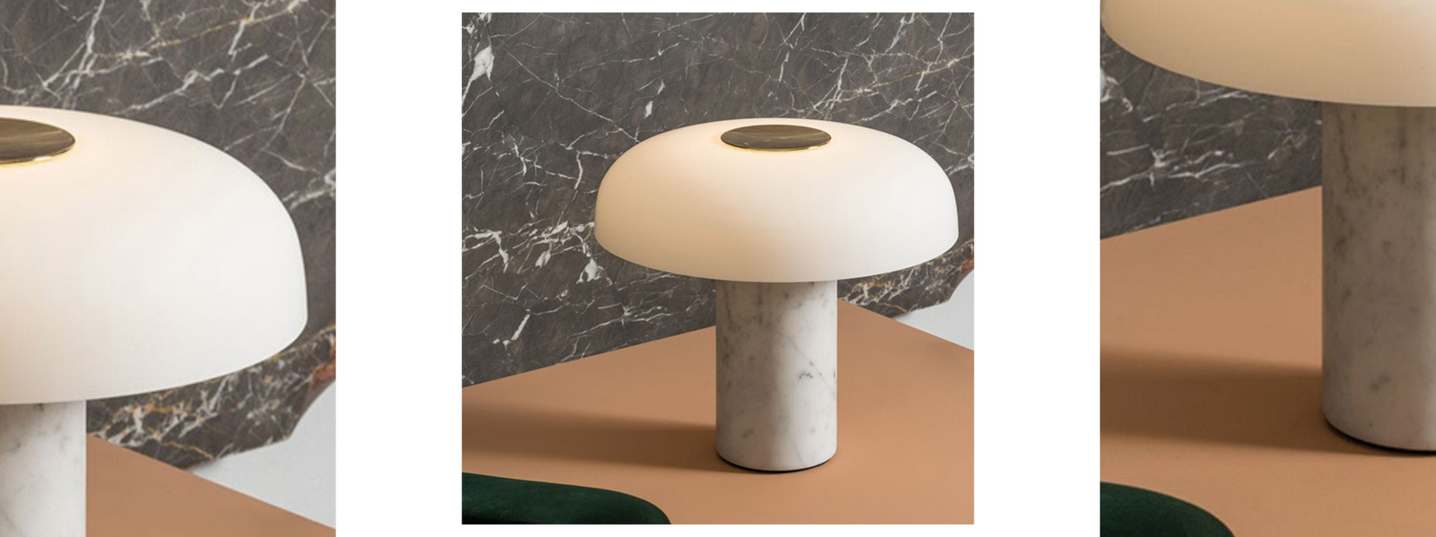 Marbella Glow Table Lamp A perfect harmony of sculptural design and timeless materials, the Marbella Glow Table Lamp elevates any space with quiet sophistication. Its cylindrical marble base exudes strength and elegance, while the smooth opaline glass dome diffuses a warm, ambient glow. Accented with a subtle metallic detail on top, this lamp blends modern minimalism with luxurious craftsmanship. Ideal as a statement piece on a side table, console, or nightstand, the Marbella Glow brings an aura of refined serenity to contemporary interiors.