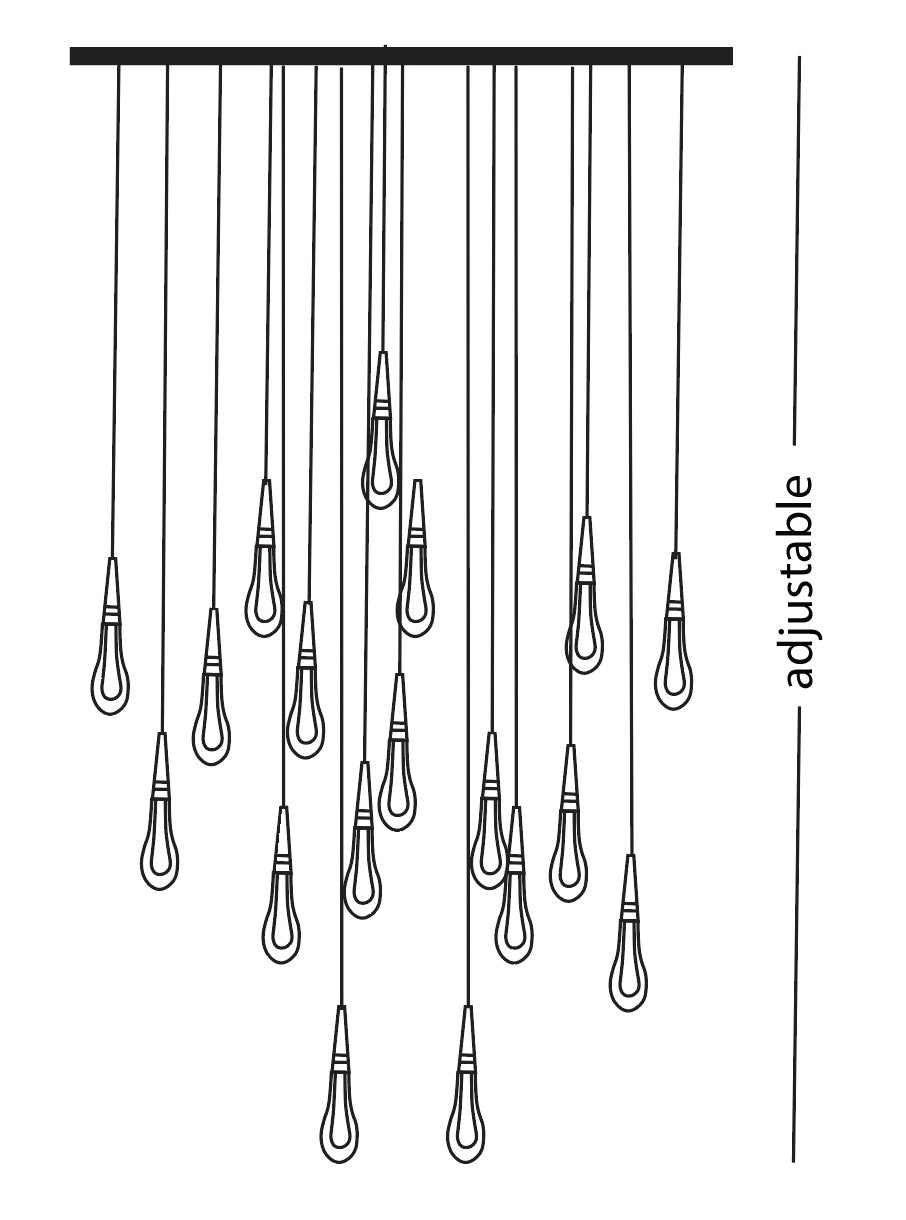 Crystal Drop hanging light shown in a glass with hanging golden leaf powder. Hanging golden leaf powder reflects off the lighting encased in the crystal components. The LED lighting device is included. Available the candle-shaped version –tapered down- and the curved version. Lamps can be combined in multiple configurations in which each element is positioned at a different height. 18 pendants set Material: Plating, Polishing, lacquer Color: Gold Bulb specification: Each pendant is equipped with a 5 watt LED chip Emitting Color: Warm White Light Source: Energy Saving, Bulb Specification: LED 4W EACH