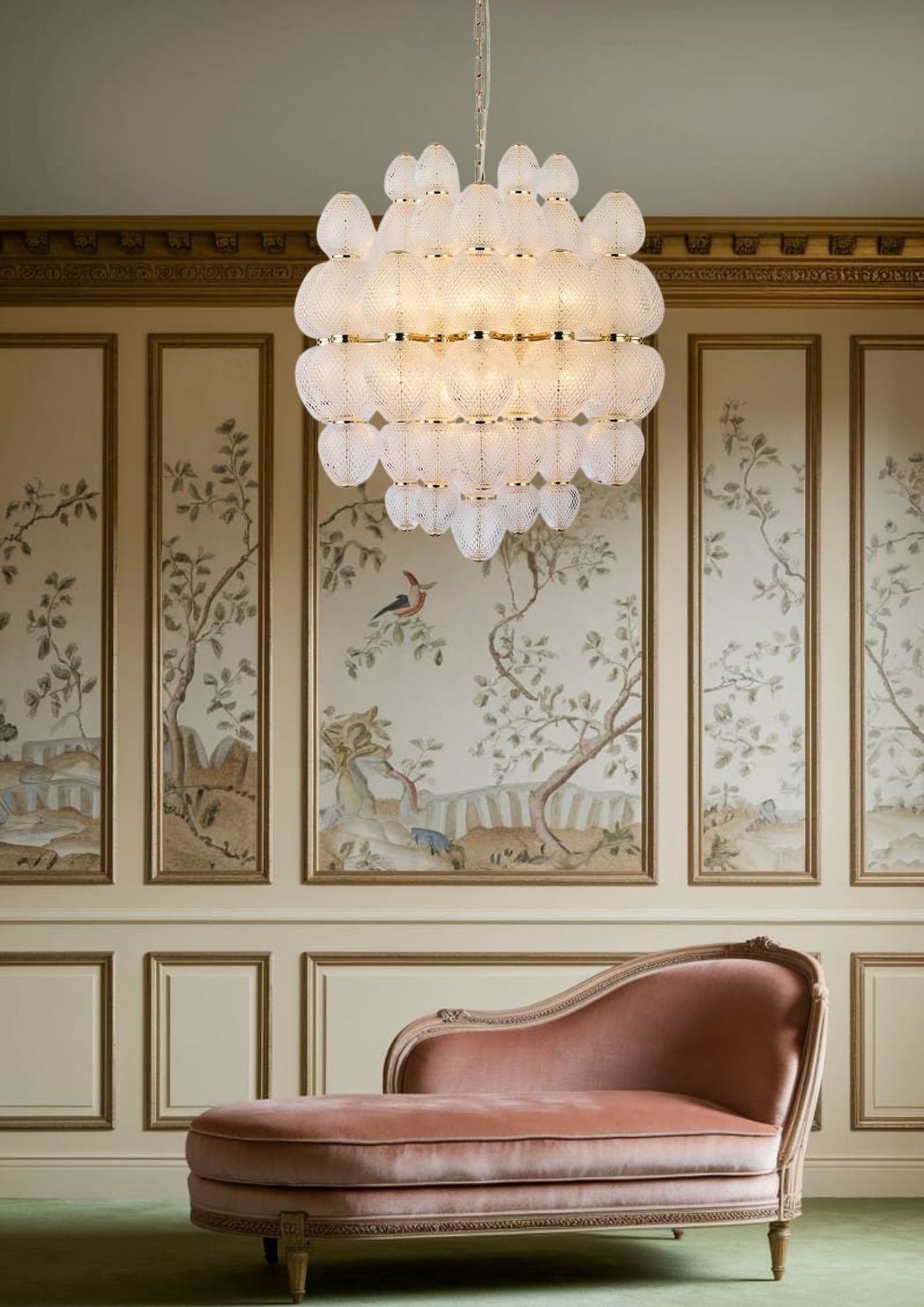 Inspired by the timeless beauty of Bryce Dallas Howard’s home in full bloom, Phul captures the poetry of a blossoming garden suspended in light. Crafted with layered glass modules reminiscent of delicate petals, this chandelier celebrates nature’s abundance through design. Its cascading form and golden accents echo both luxury and lyrical artistry, making it more than just illumination—it is a sculpture of light. Whether adorning a double-height foyer, a grand dining space, or a contemporary lounge, Phul becomes the heart of the room radiating warmth, elegance, and the spirit of a home always in bloom.