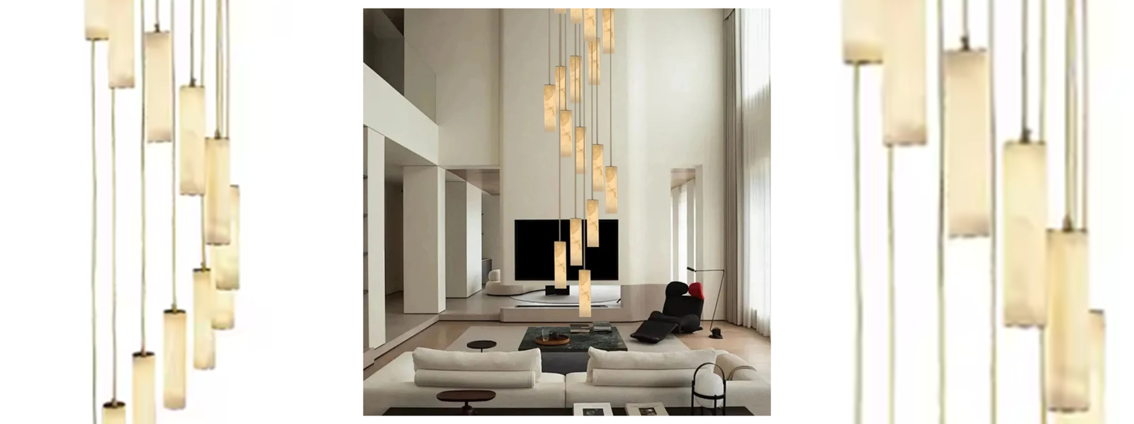 The Luminous Chandelier embodies the essence of modern grandeur with its radiant form and refined craftsmanship. Handcrafted from premium metal and alabaster elements, it diffuses a soft, ambient glow that transforms any room into a haven of elegance. Each detail reflects thoughtful design — from the balanced geometry to the warm interplay of light and texture. Ideal for dining areas, living rooms, or grand foyers, the Luminous Chandelier makes a captivating statement while maintaining timeless sophistication [SET OF 18 PCS]